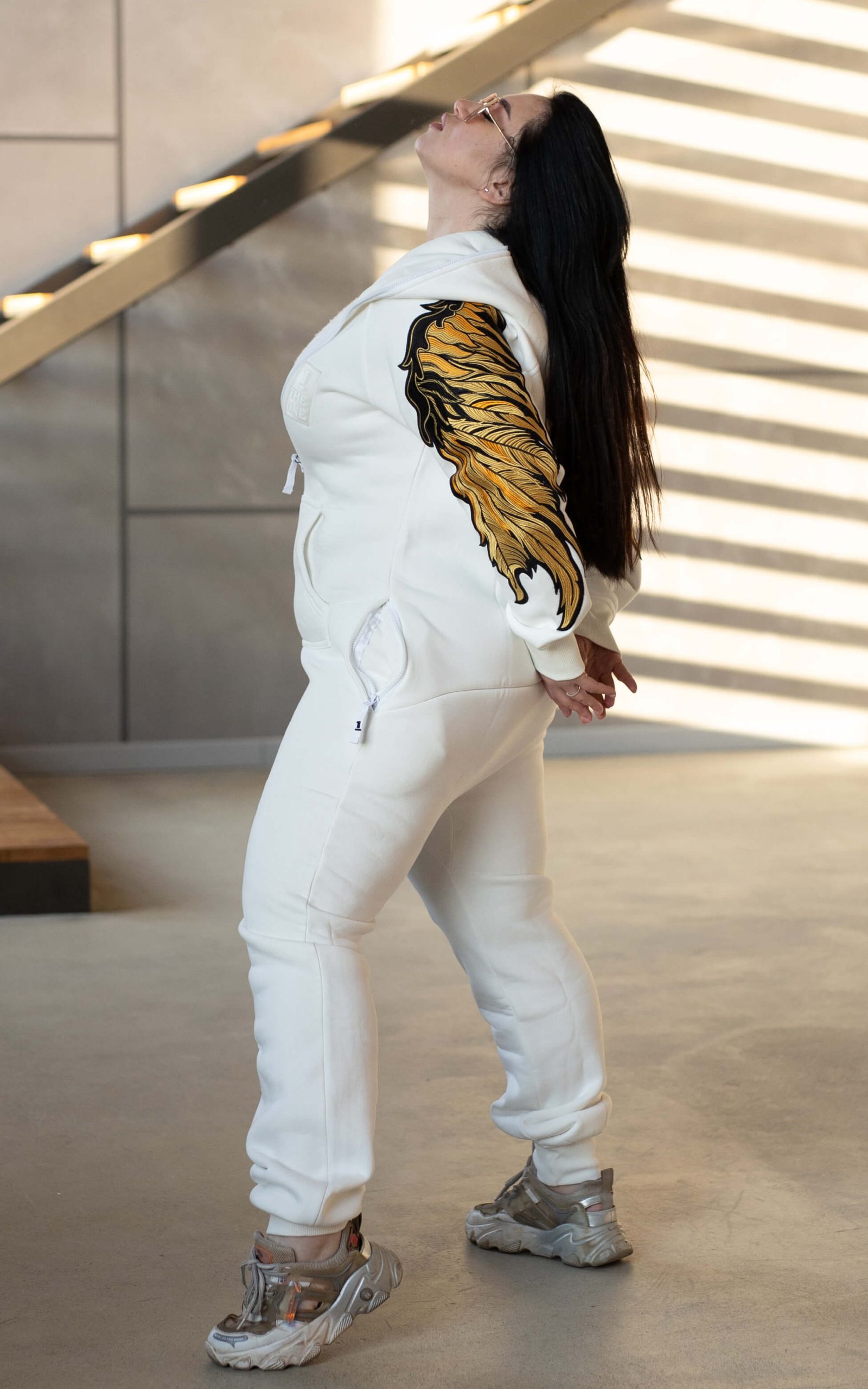 Ідеально підійде для творчих і романтичних натур. Крилата вишивка на рукавах надає комбінезону особливої ніжності, легкості та елегантності. М’який флісовий матеріал створює відчуття затишку і комфорту.