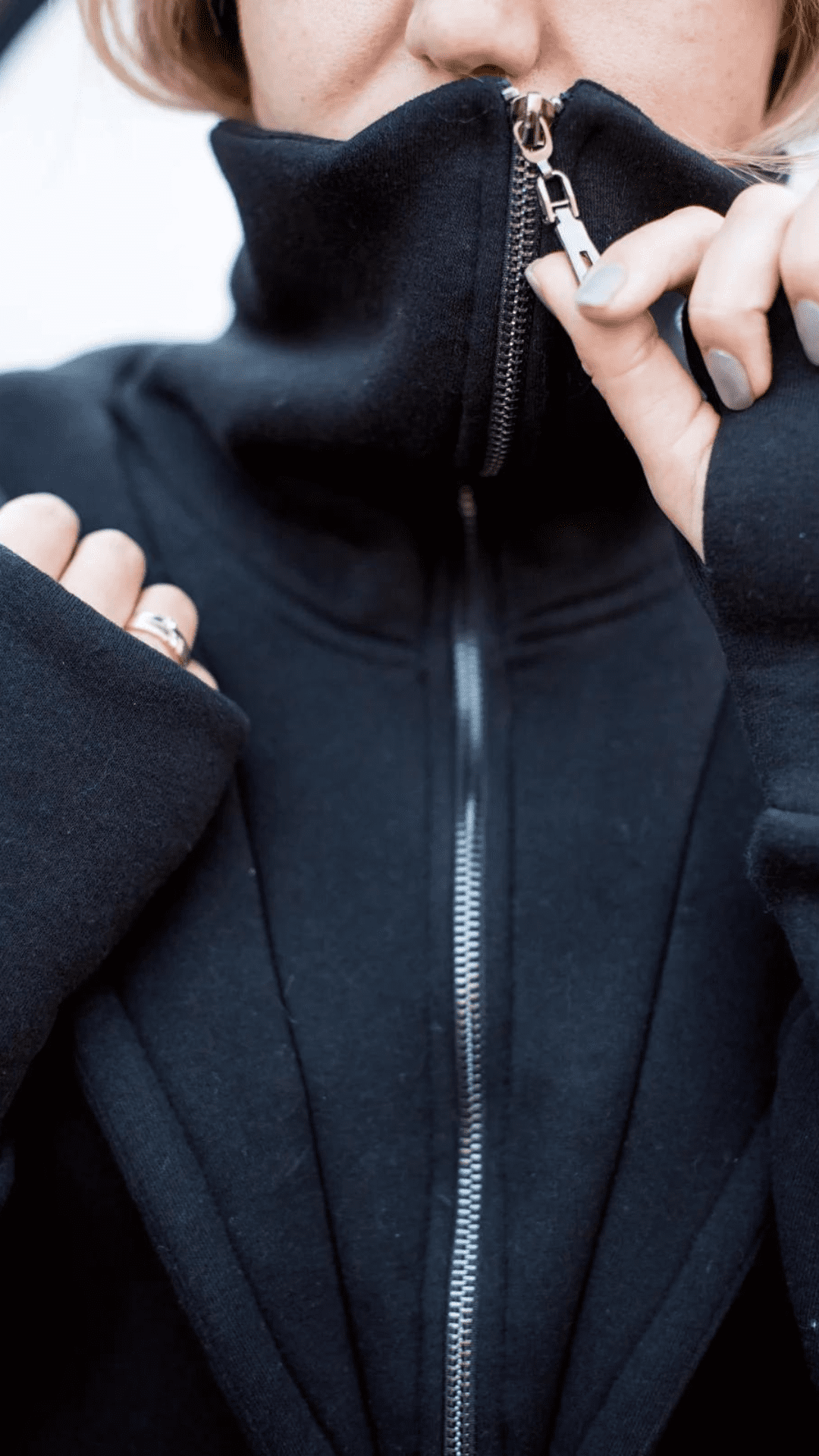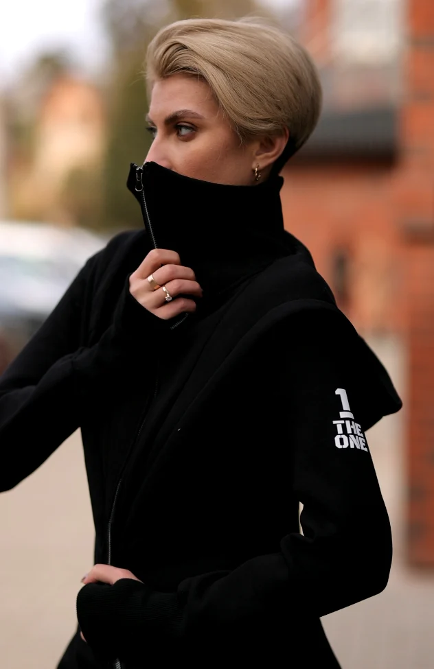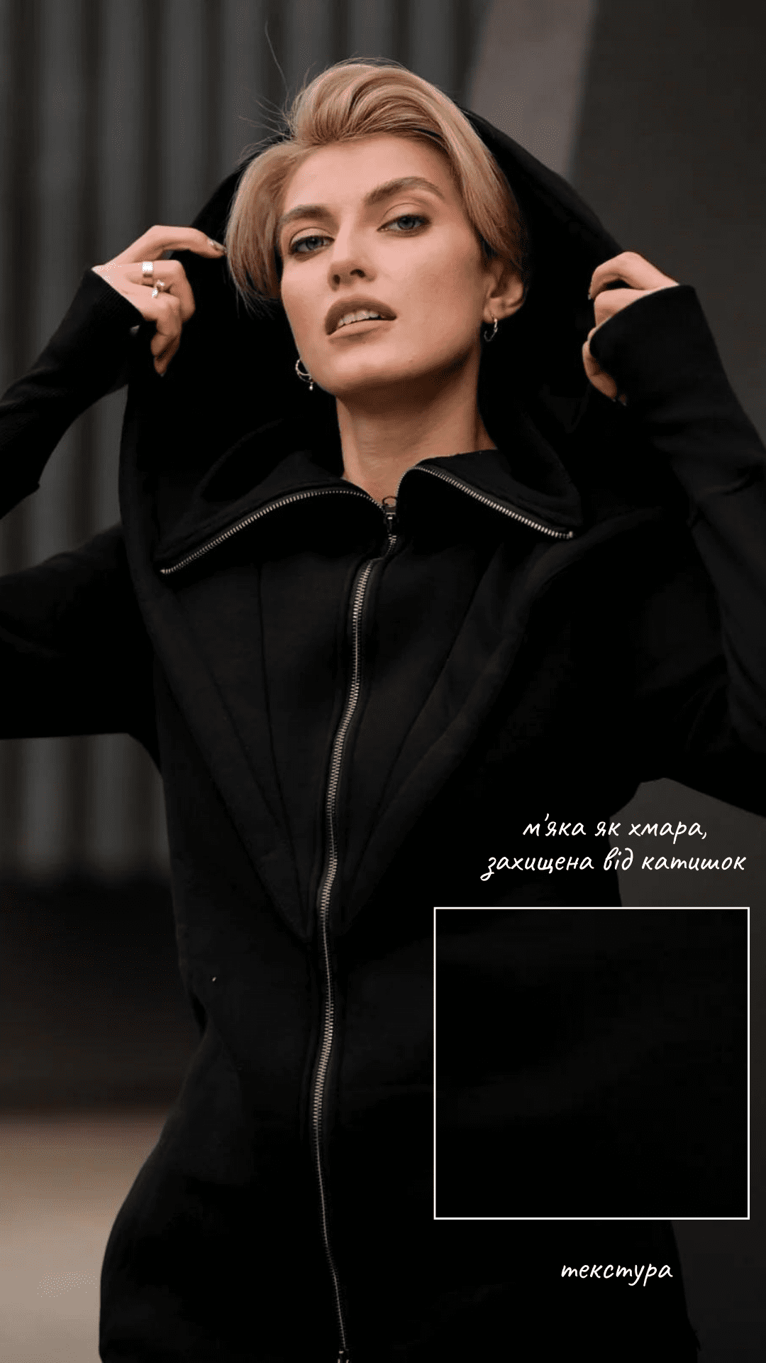 З настроєм з Японії. Величезний капюшон, за яким можна сховатися в подорожі від зайвого світла за бажання поспати. Дуже високий комір захистить від вітру в кращому ключі. Подовжені манжети з прорізом для великого пальця. Як це зручно, особливо взимку. У моделі Ninja black є акуратна прихована блискавка в нижній частині спини.