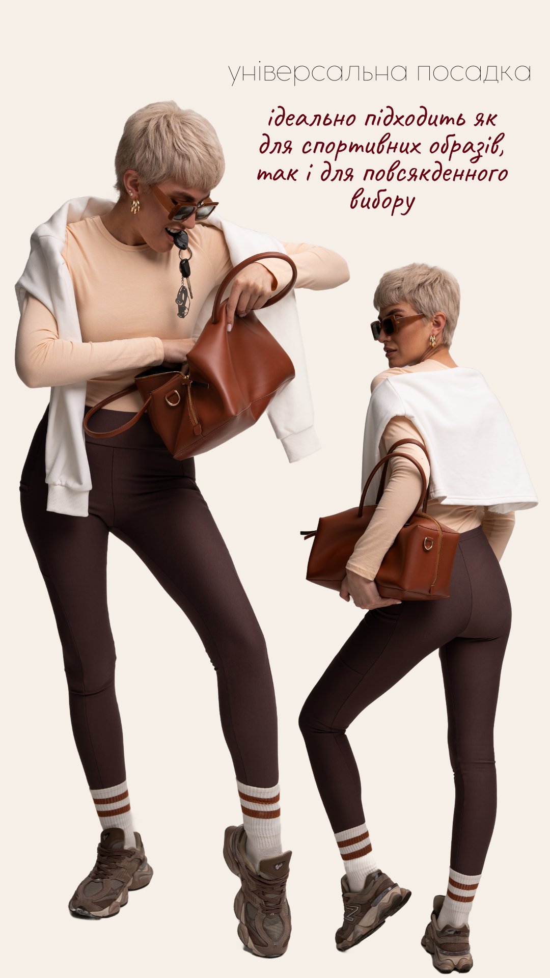 Матеріал легінсів має чудову повітропроникність, дозволяючи шкірі дихати та забезпечуючи комфорт протягом усього дня. Ці легінси легко поєднуються з різними предметами гардеробу, будь то спортивний топ, туніка або затишний светр.
