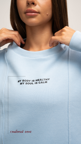 Світшот прикрашає напис “My Soul”, що додає образу індивідуальності та харизми. Укорочений силует підкреслює талію та ідеально поєднується з джинсами, спідницями та спортивними штанами із завищеною талією, створюючи сучасні та стильні образи.